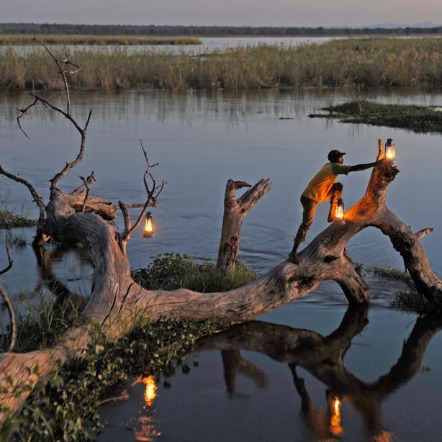 Der Lower Zambezi Nationalpark folgt dem grossen Strom vom Chongwe Fluss durch die Mpata Schlucht über nicht weniger als 120 Kilometer. Für den Afrika-Forscher David Livingstone war dieses Gebiet die Endstation seiner Hoffnung, dem Weg des Sambezi weiter gen Norden folgen zu können. Es ist dies die traditionelle Heimat der Nsenga und Goba, die als „Flussmenschen“ Eingang in die Literatur der afrikanischen Urvölker fanden. Seit 1983 ist der Lower Zambezi Nationalpark bekannt für seinen grossen Bestand an Elefanten und Büffeln. Die Lodges des Parks befinden sich ausschliesslich am Ufer des Flusses und sind die Ausgangspunkte für abenteuerliche Kanu-Safaris. Sie sind auch deshalb bei den Urlaubern beliebt, weil dies eine sehr geräuschlose Art ist, um sich von ihren luxuriösen Lodges den wilden Tieren der Uferzonen zu nähern.
